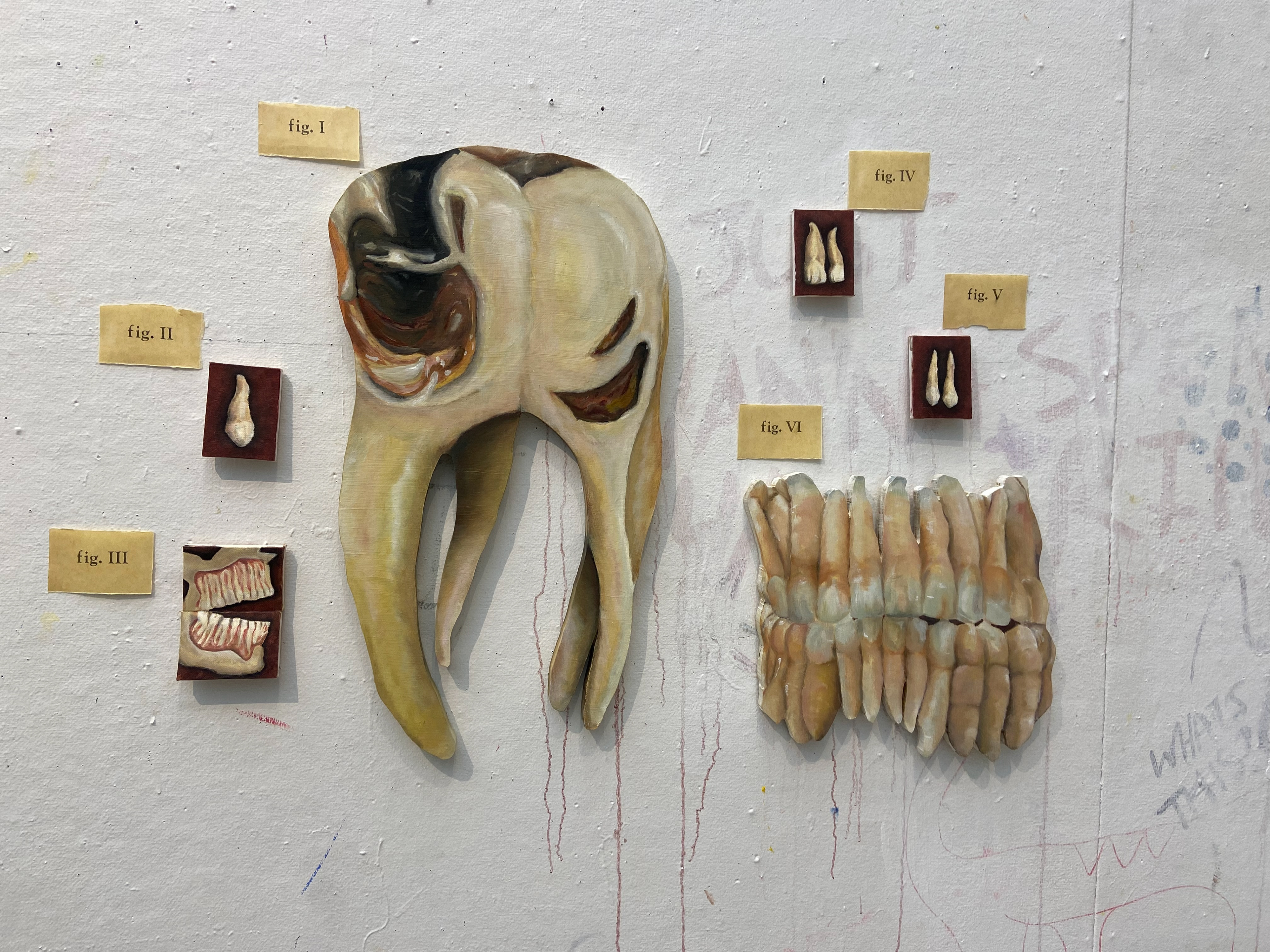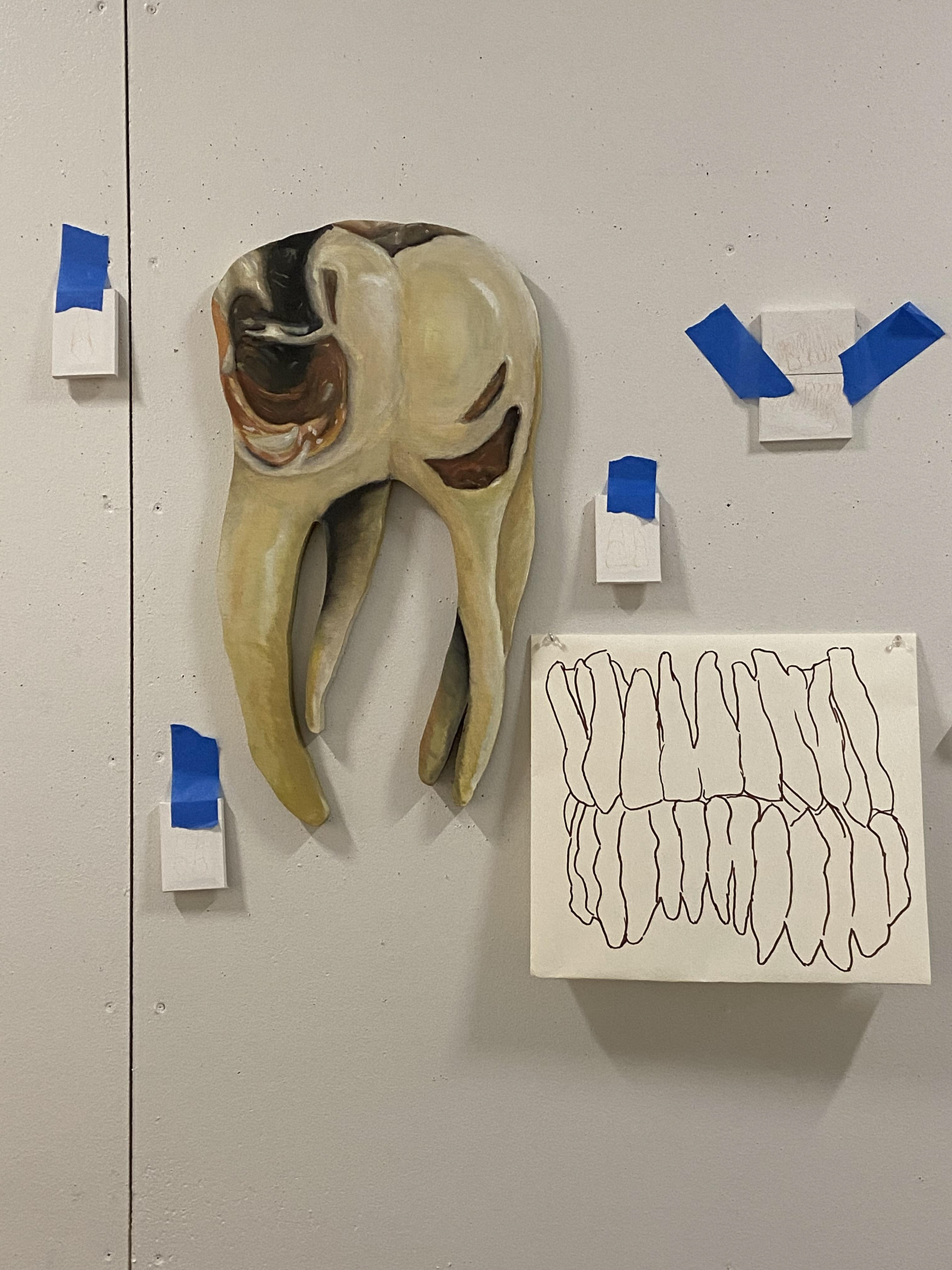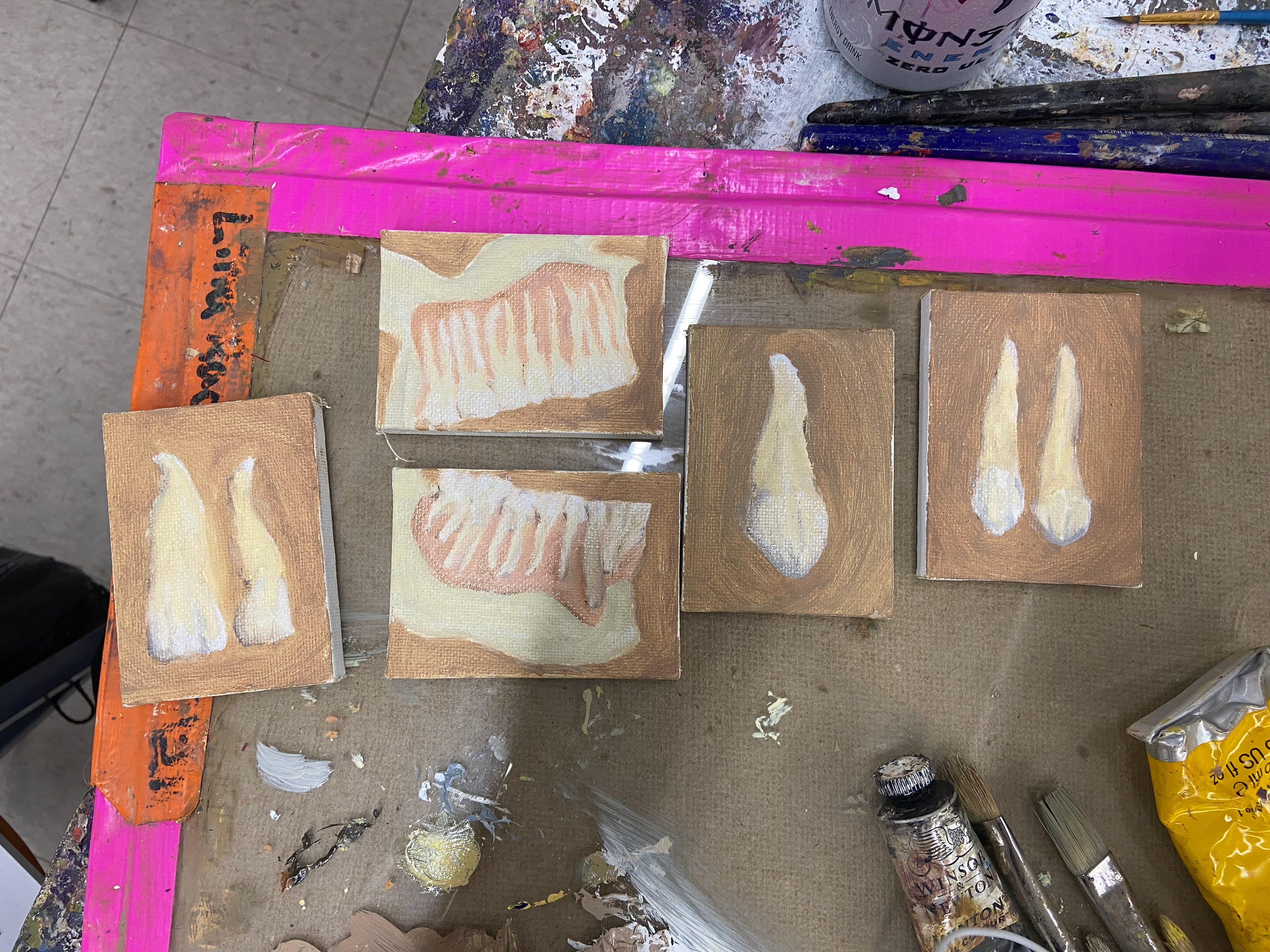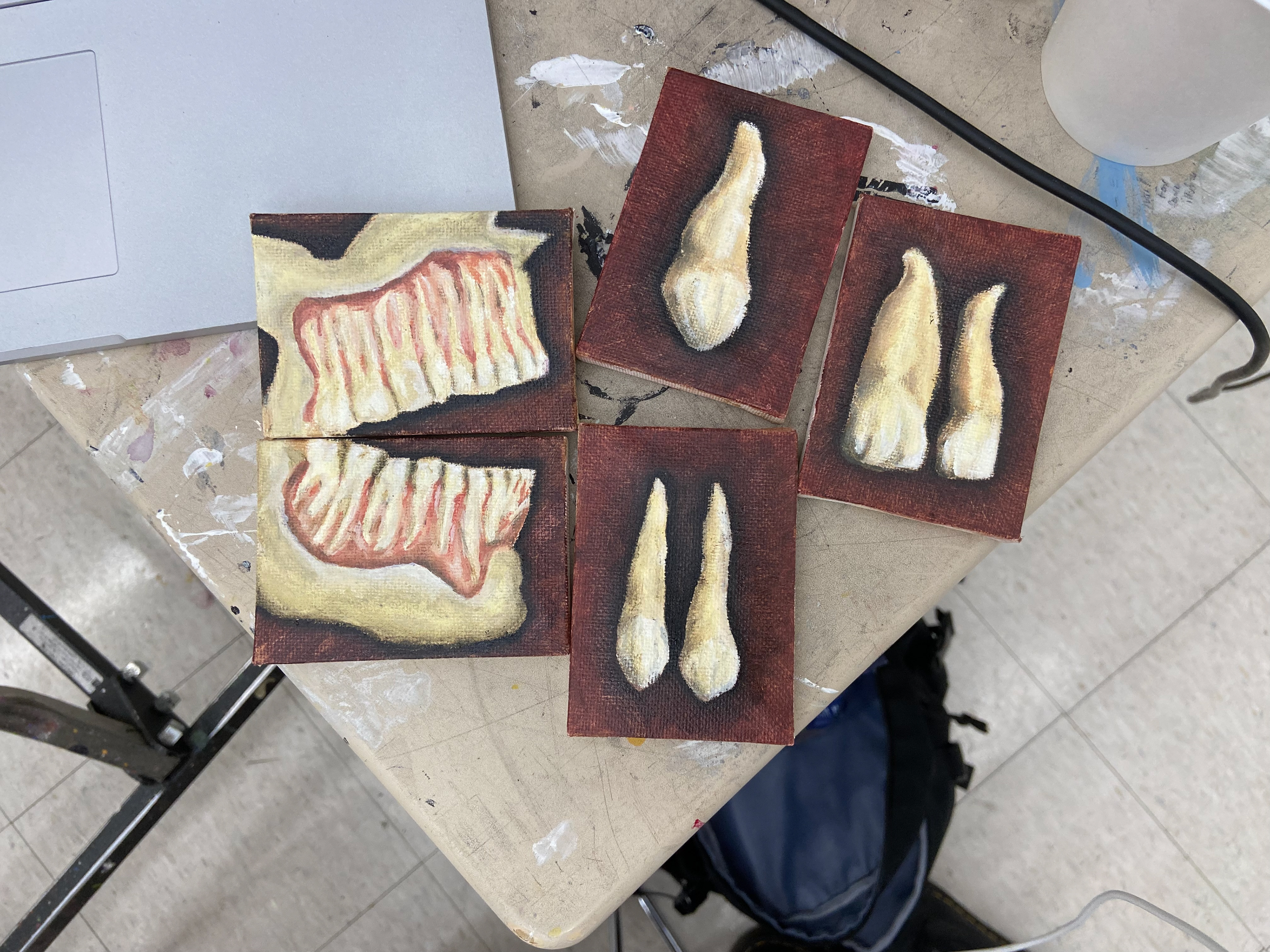 Teeth painting studies done over Fall 21 semester. Exploring the similarities between bone and skin in the form of teeth and their decay.