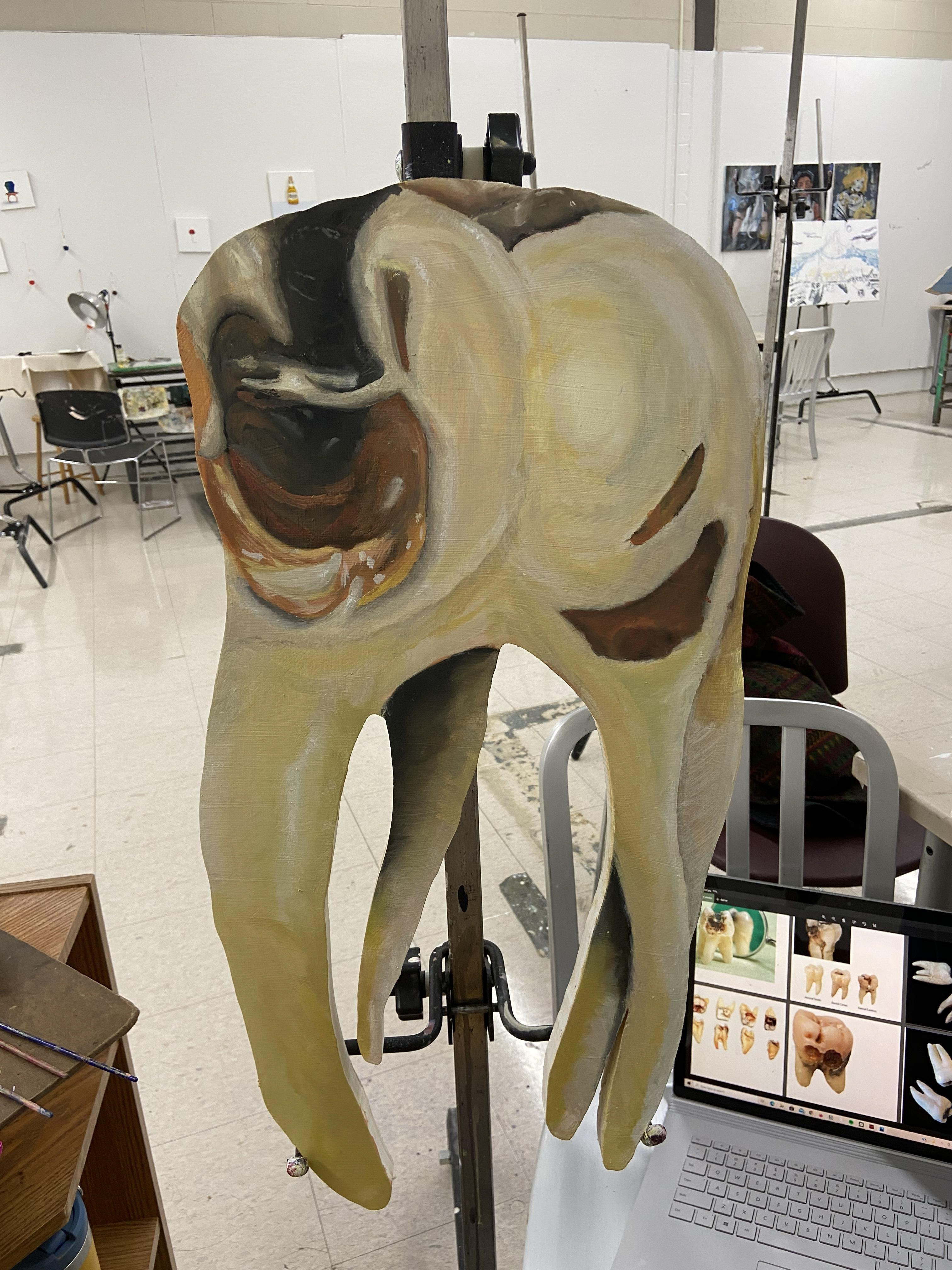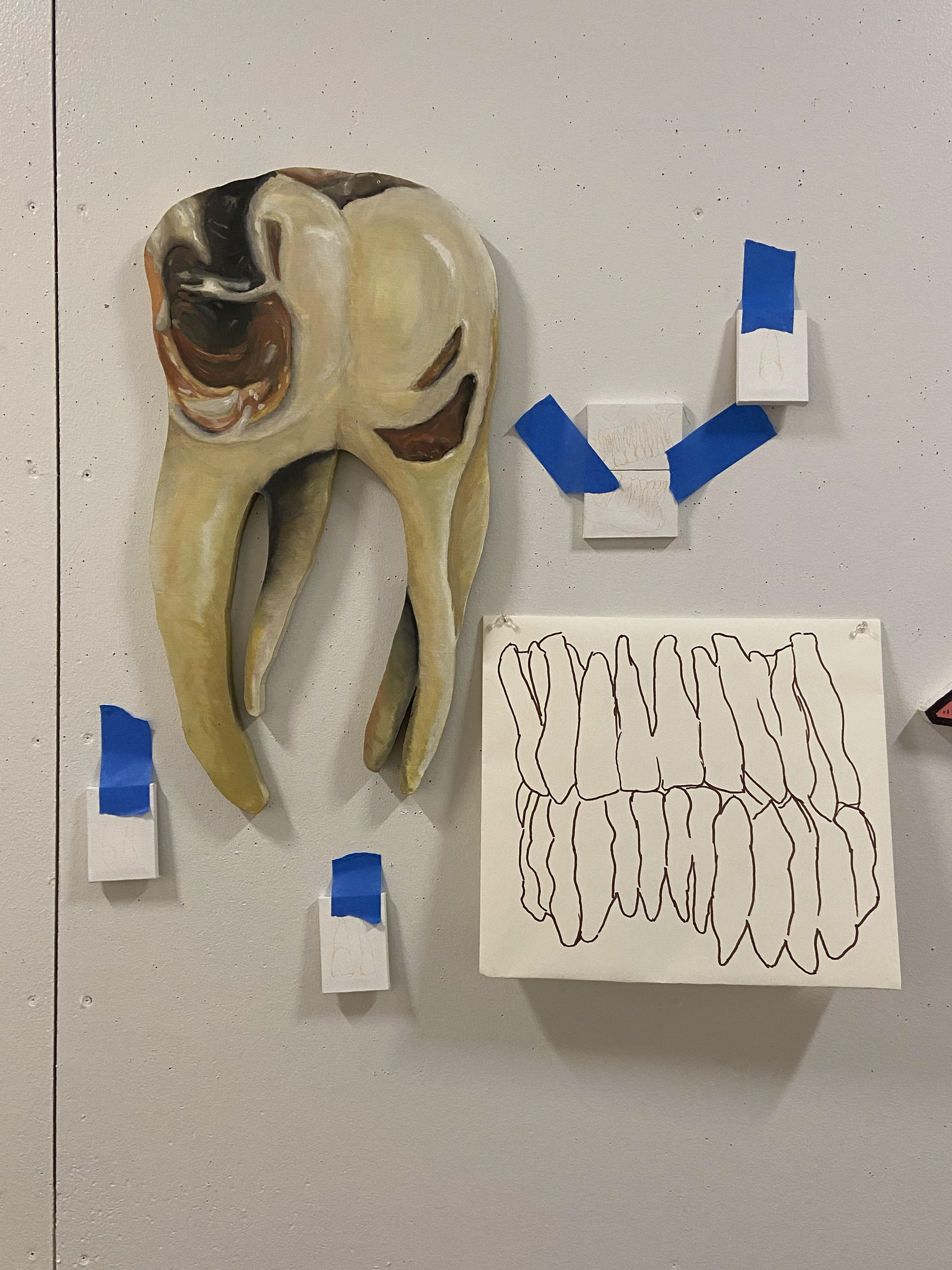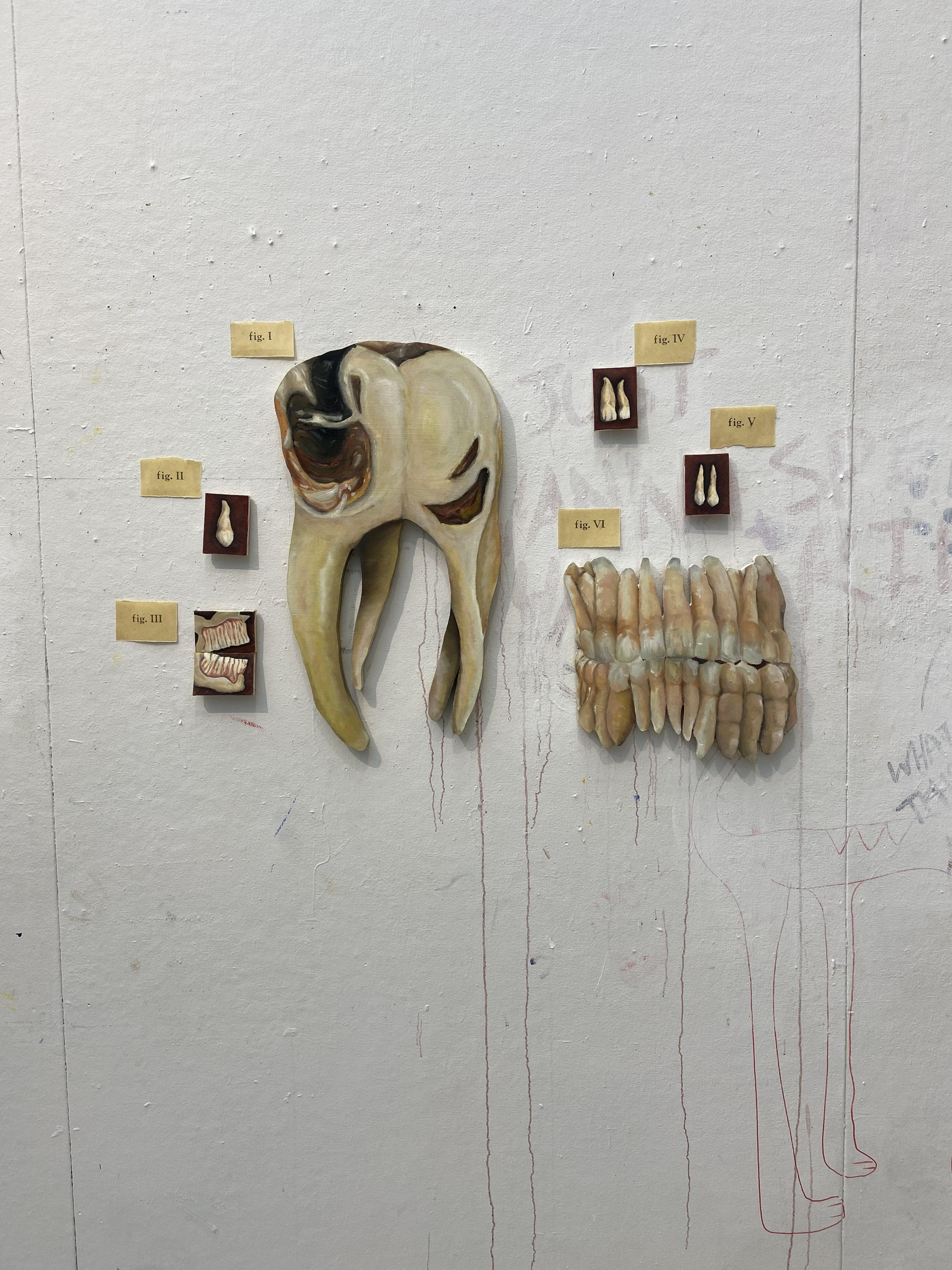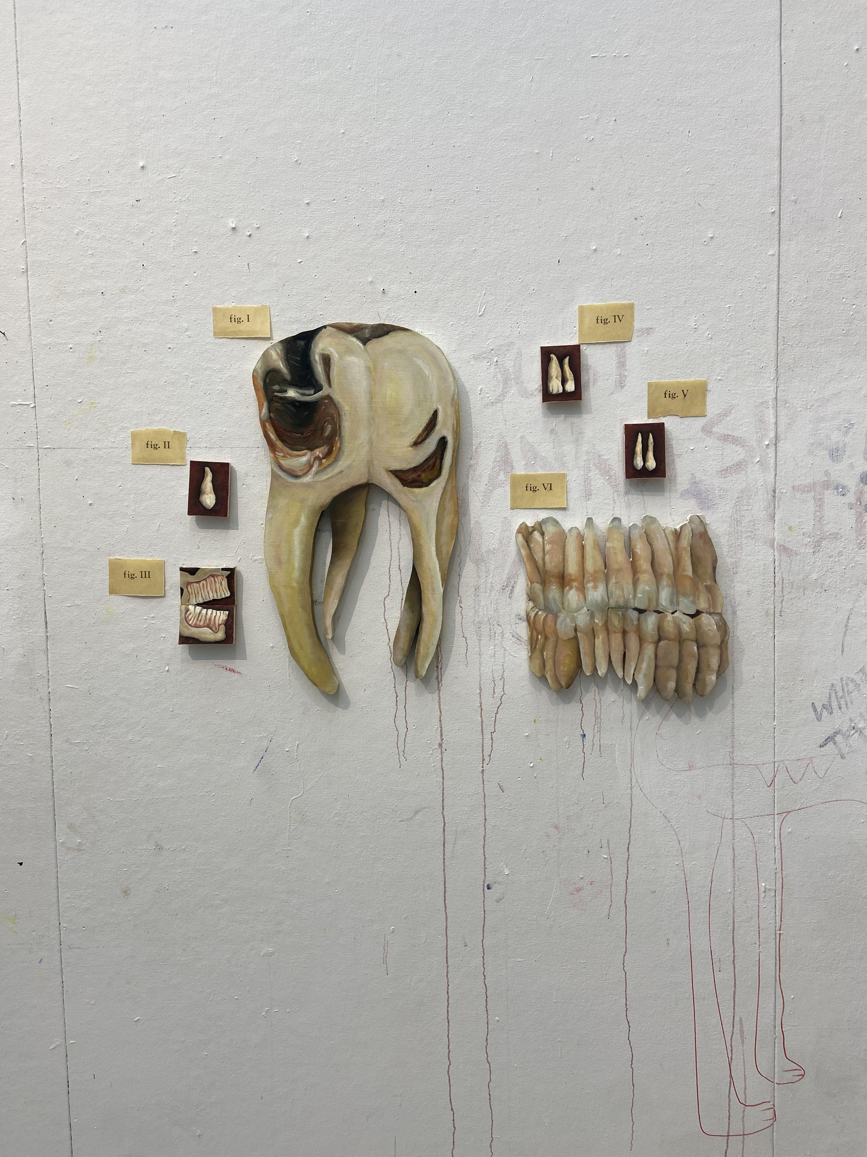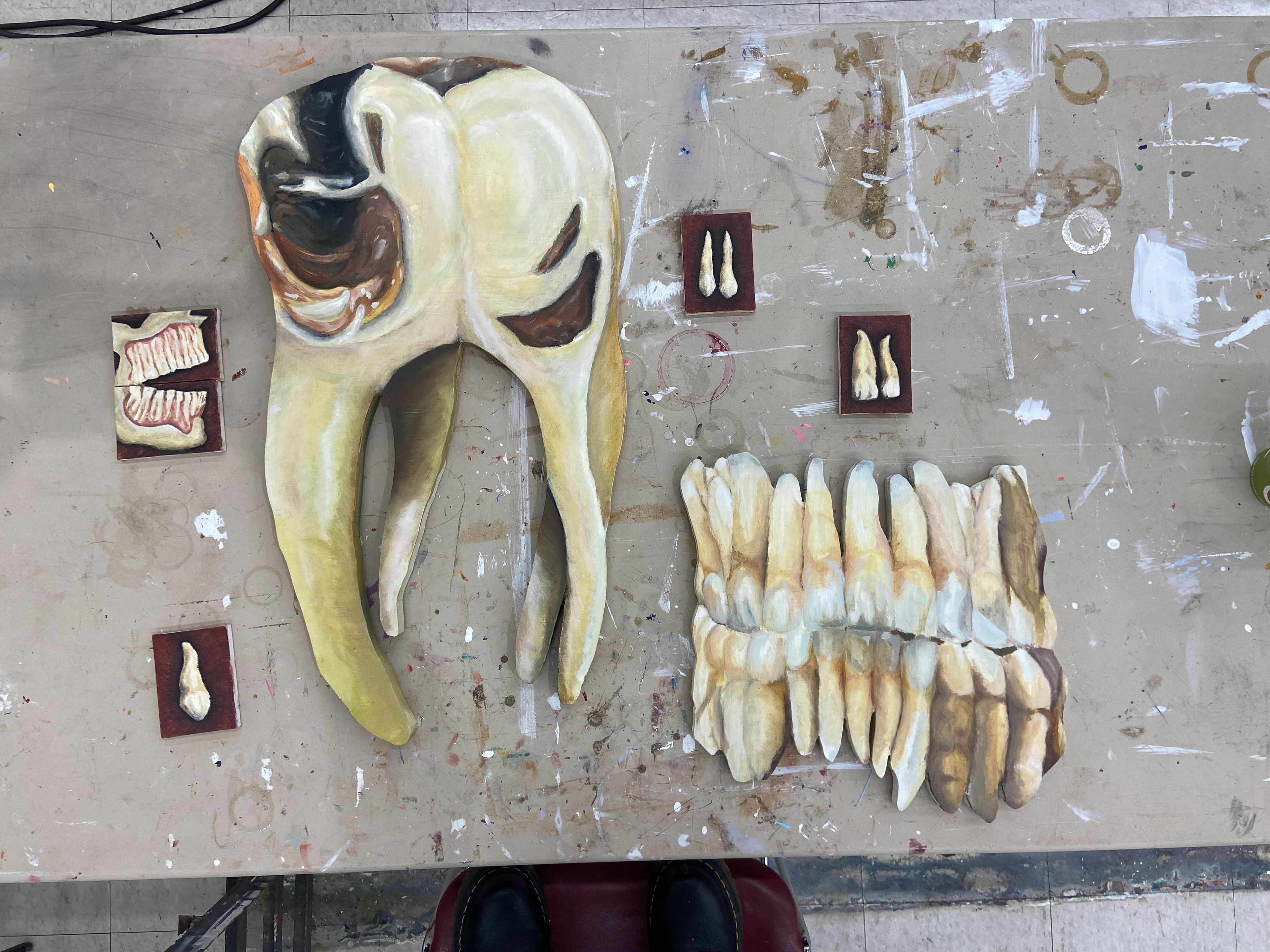 Teeth painting studies done over Fall 21 semester. Exploring the similarities between bone and skin in the form of teeth and their decay.
